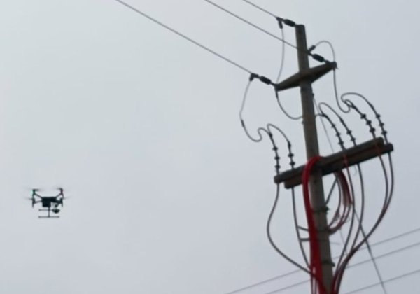 con dron en linea de media tensión